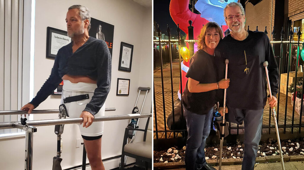 When Mike was discharged from the hospital to a rehabilitation facility, he worked hard to adapt to his new life. “I take pride in overcoming obstacles and problem-solving,” Mike says. He figured out what works best for him in terms of getting around — using forearm crutches and a wheelchair.